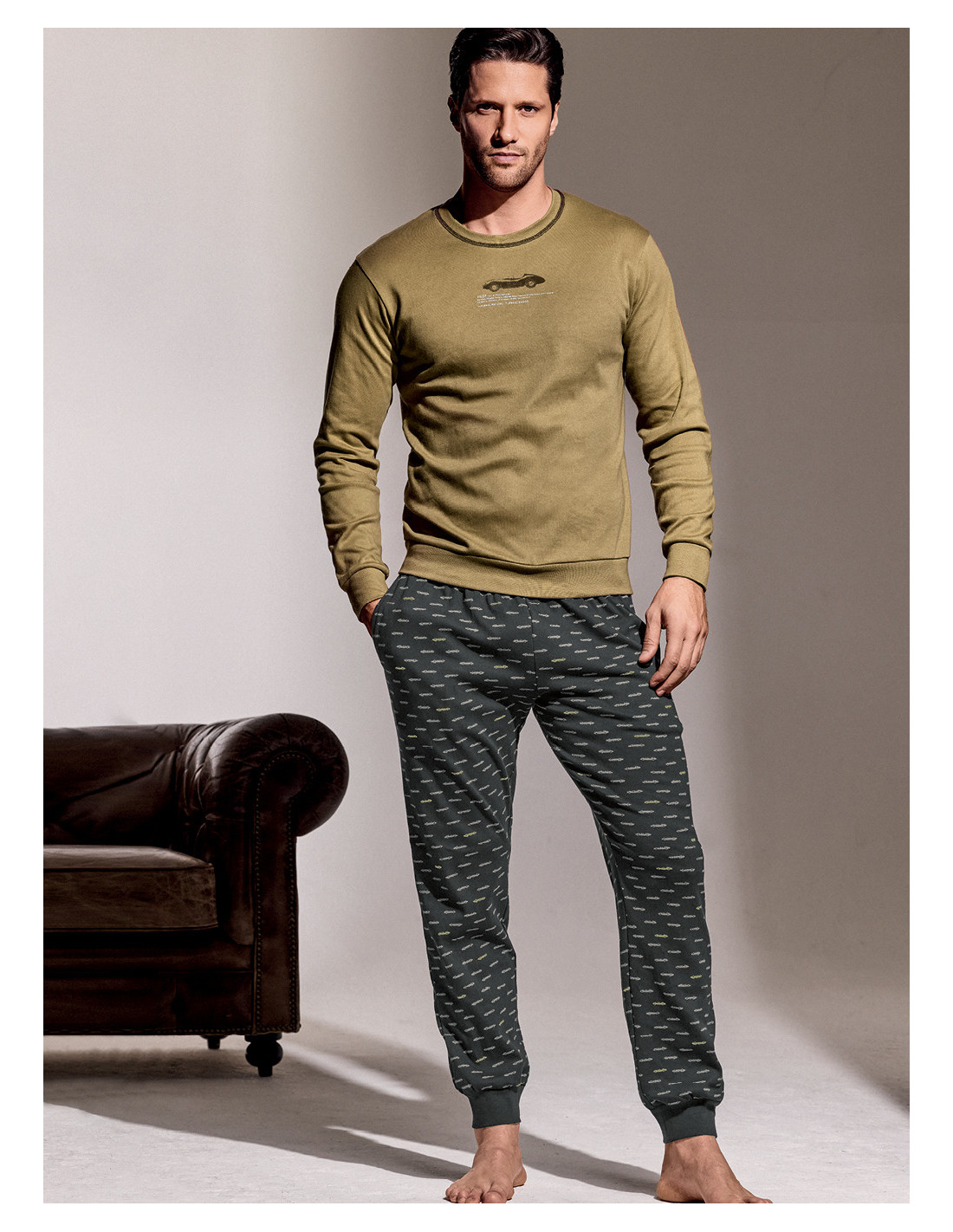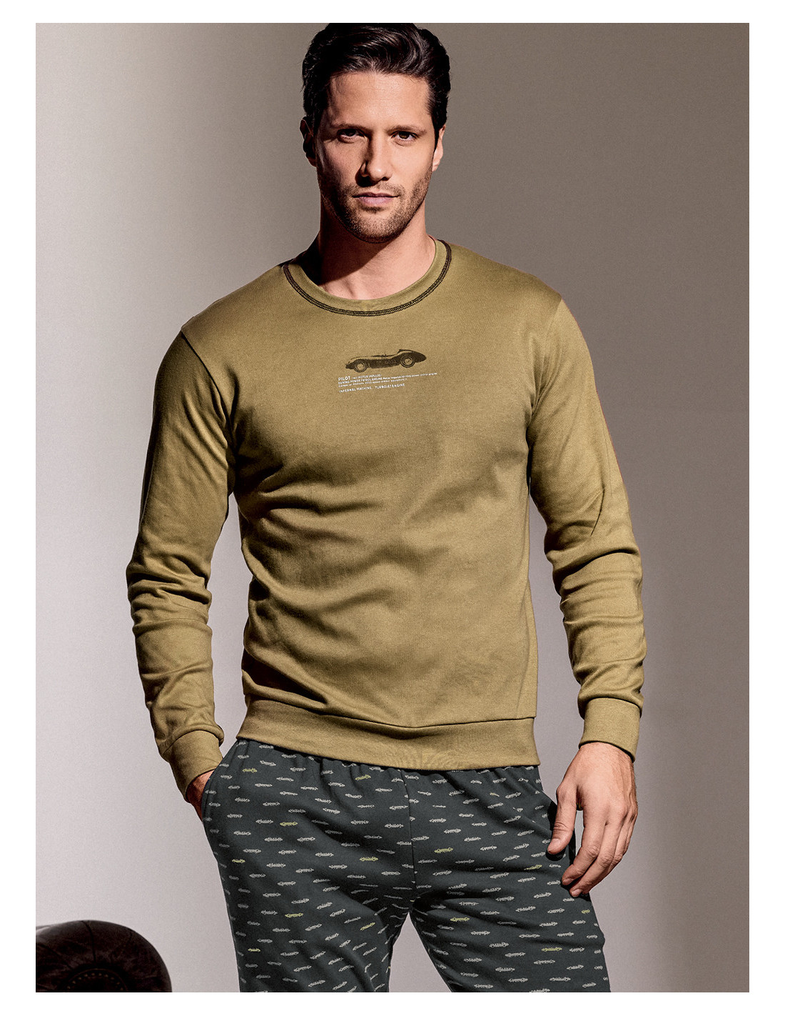 Pigiama manica lunga girocollo con pantalone lungo polsi in interlock di cotone. Serie RACING