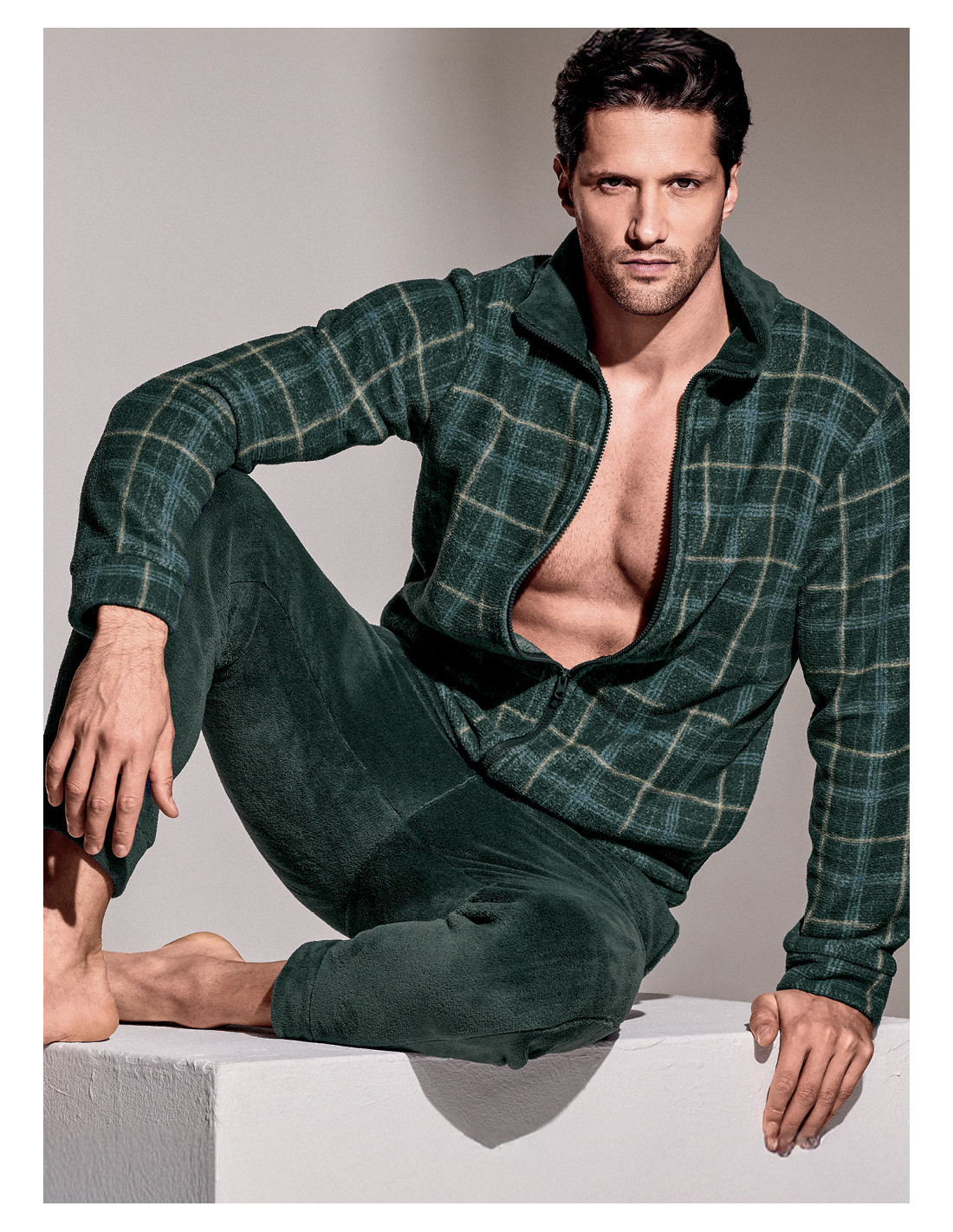 Pigiama manica lunga serafino con pantalone lungo polsi in interlock di cotone. Serie MOUNTAIN