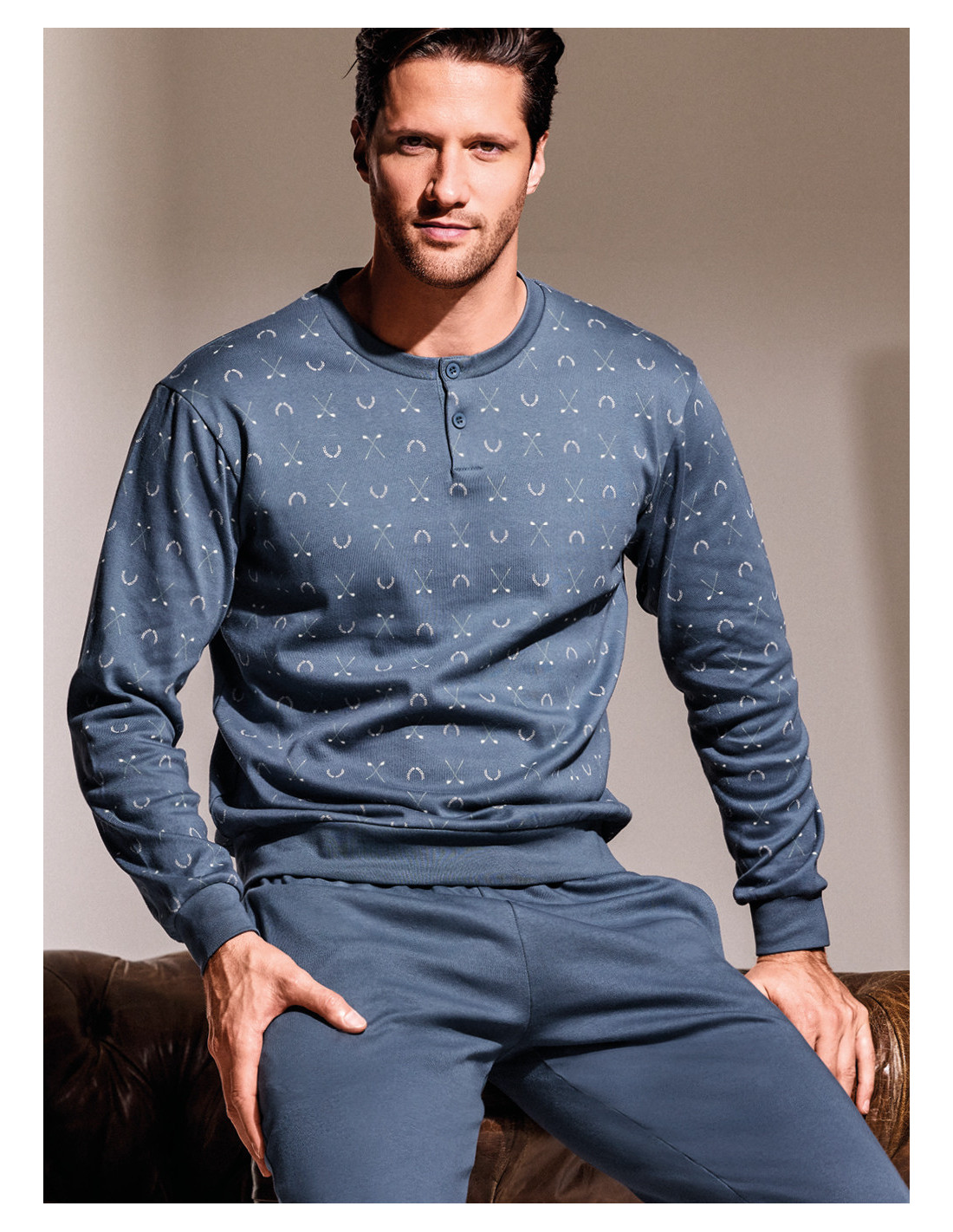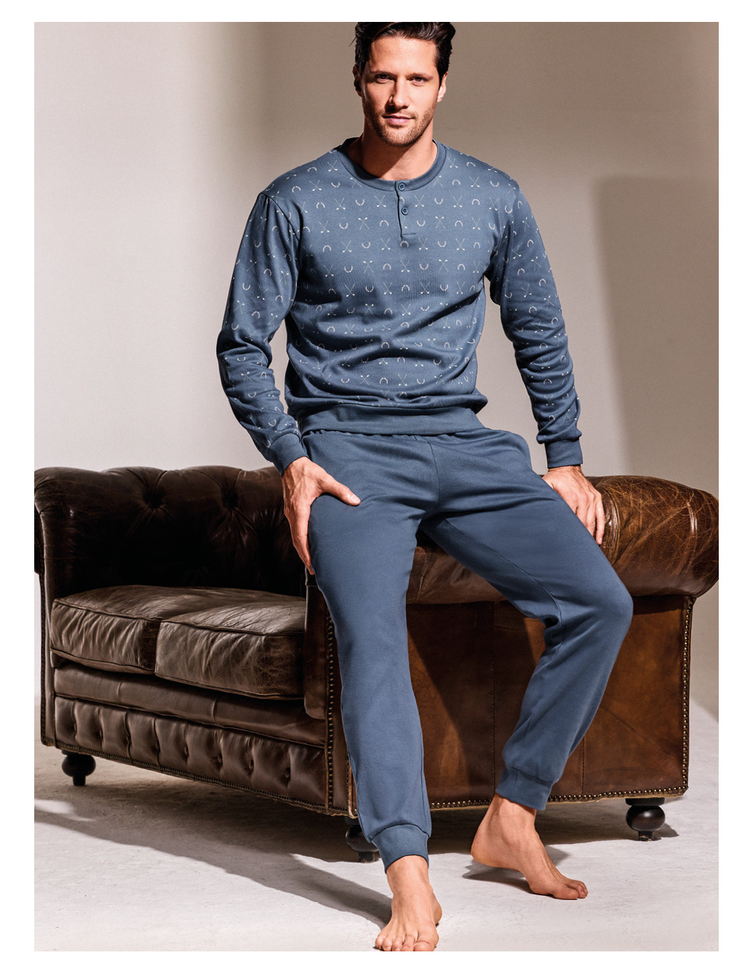 Pigiama manica lunga serafino con pantalone lungo polsi in interlock di cotone. Serie GOLF