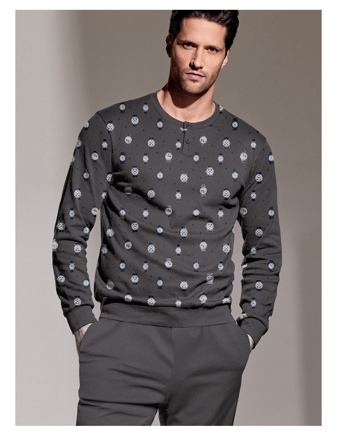 Pigiama manica lunga serafino con pantalone lungo polsi in interlock di cotone. Serie TIMEOUT