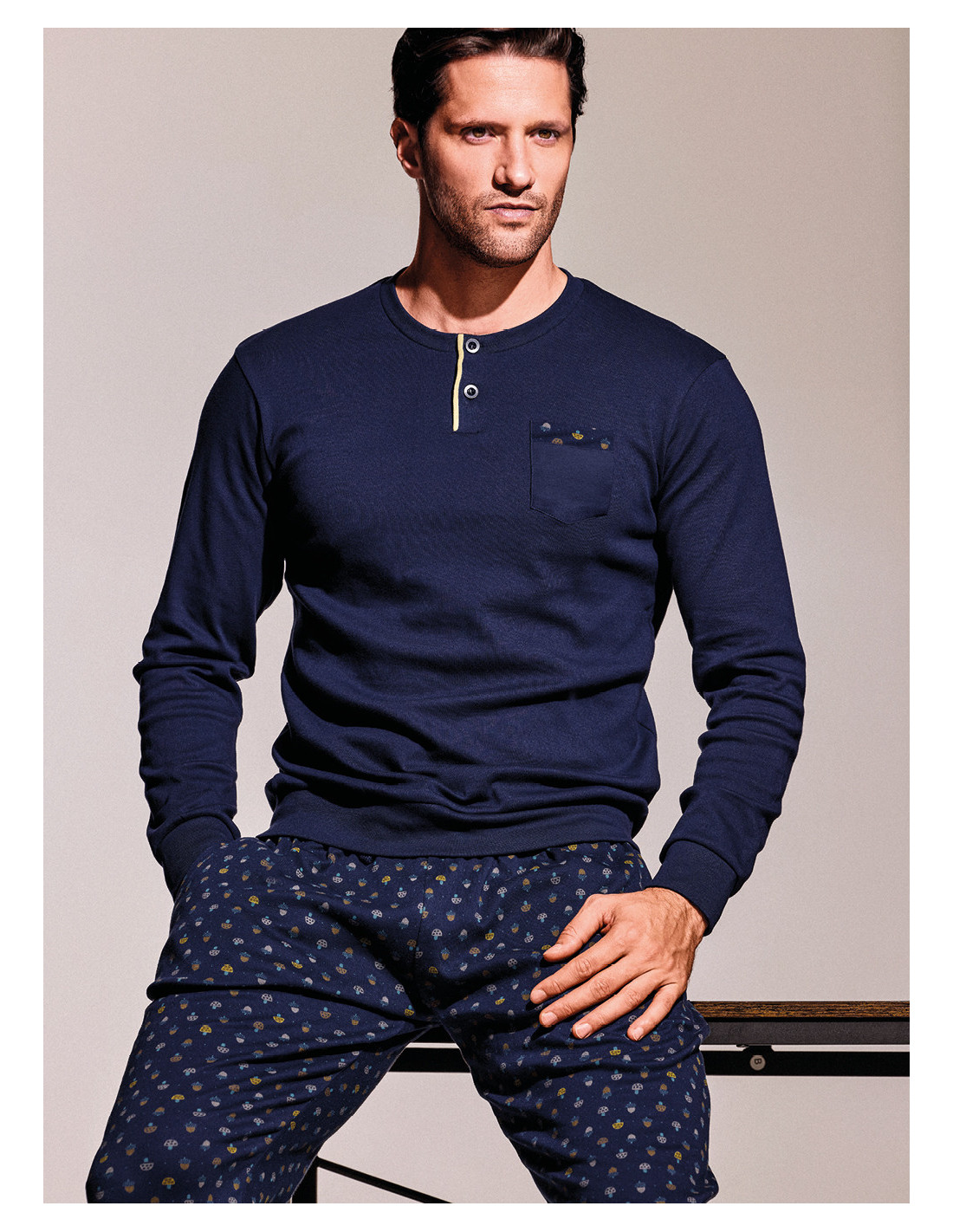 Pigiama manica lunga serafino con pantalone lungo polsi in interlock di cotone. Serie MAGICLIFE