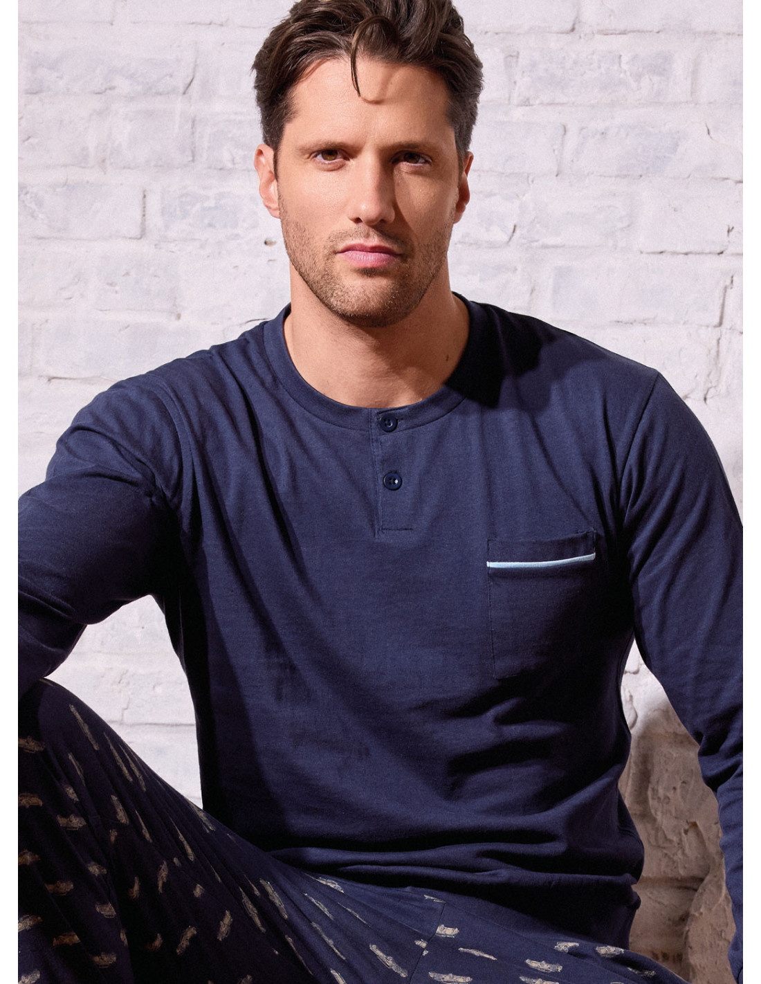 Il pigiama Vintage è un classico contemporaneo, essenziale e curato nei dettagli. La maglia serafino a manica lunga è in tinta unita con abbottonatura pulita e taschino rifinito a contrasto, per un look sobrio e moderno. Il pantalone lungo con polsi, in micro fantasia auto d’epoca, aggiunge personalità senza rinunciare all’eleganza. Jersey di cotone morbido e traspirante, perfetto per l’uso quotidiano.