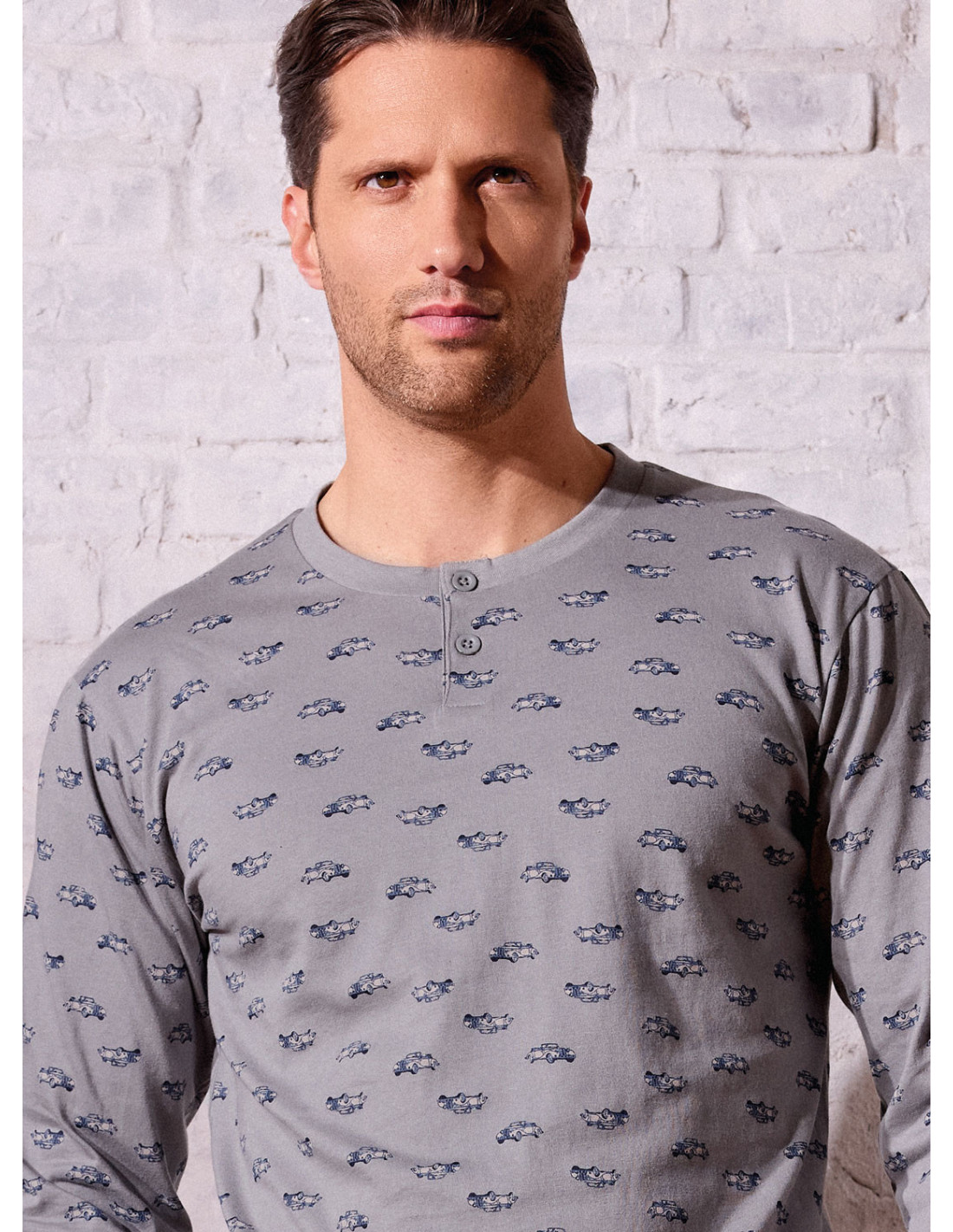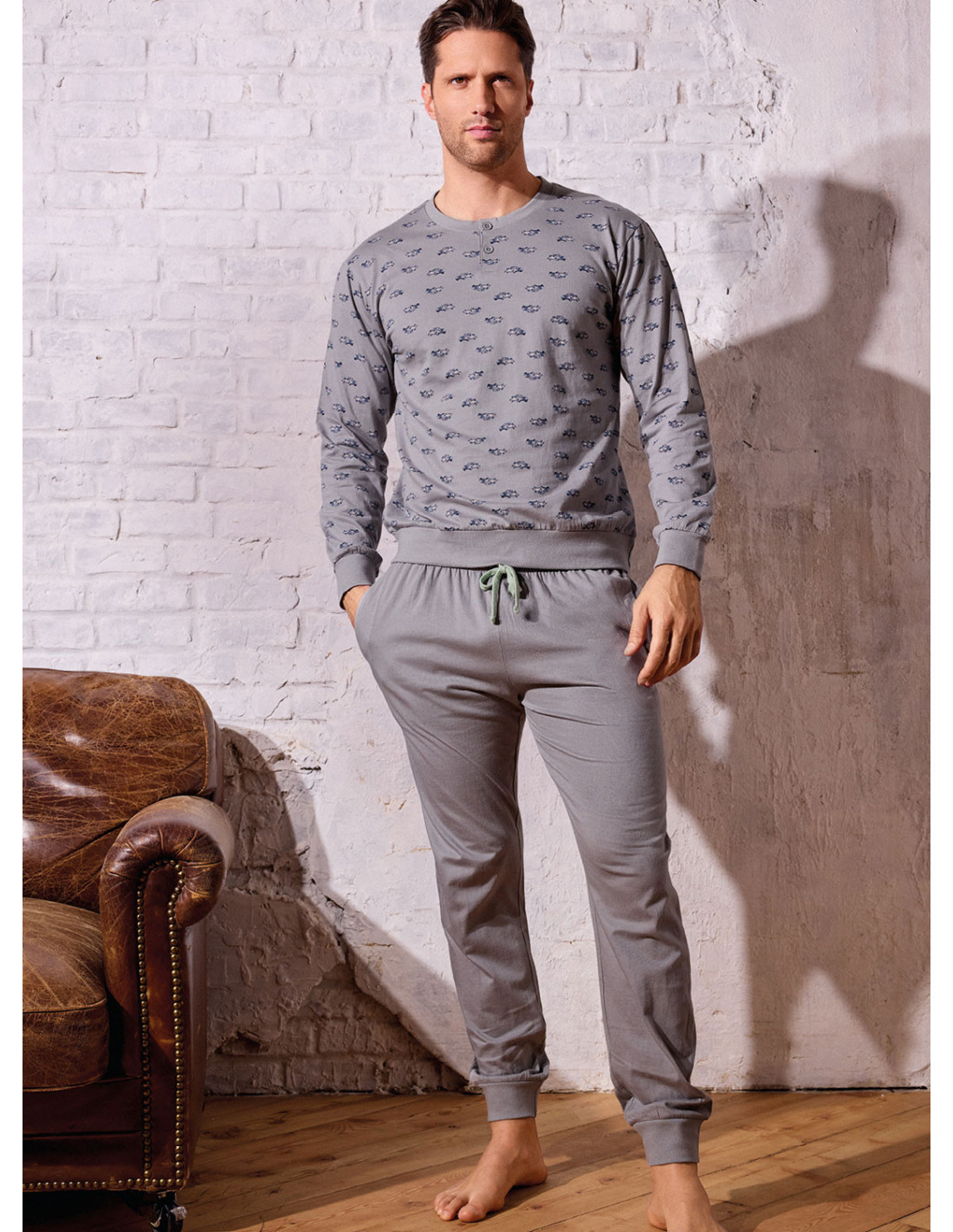 Pigiama serafino in jersey di cotone con manica lunga e pantalone lungo con polsi. Serie Vintage.