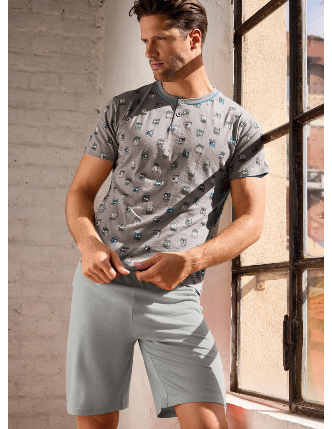 Pigiama uomo serafino mezza manica in jersey di cotone con shorts Serie Go Surf INFIOREUOMO